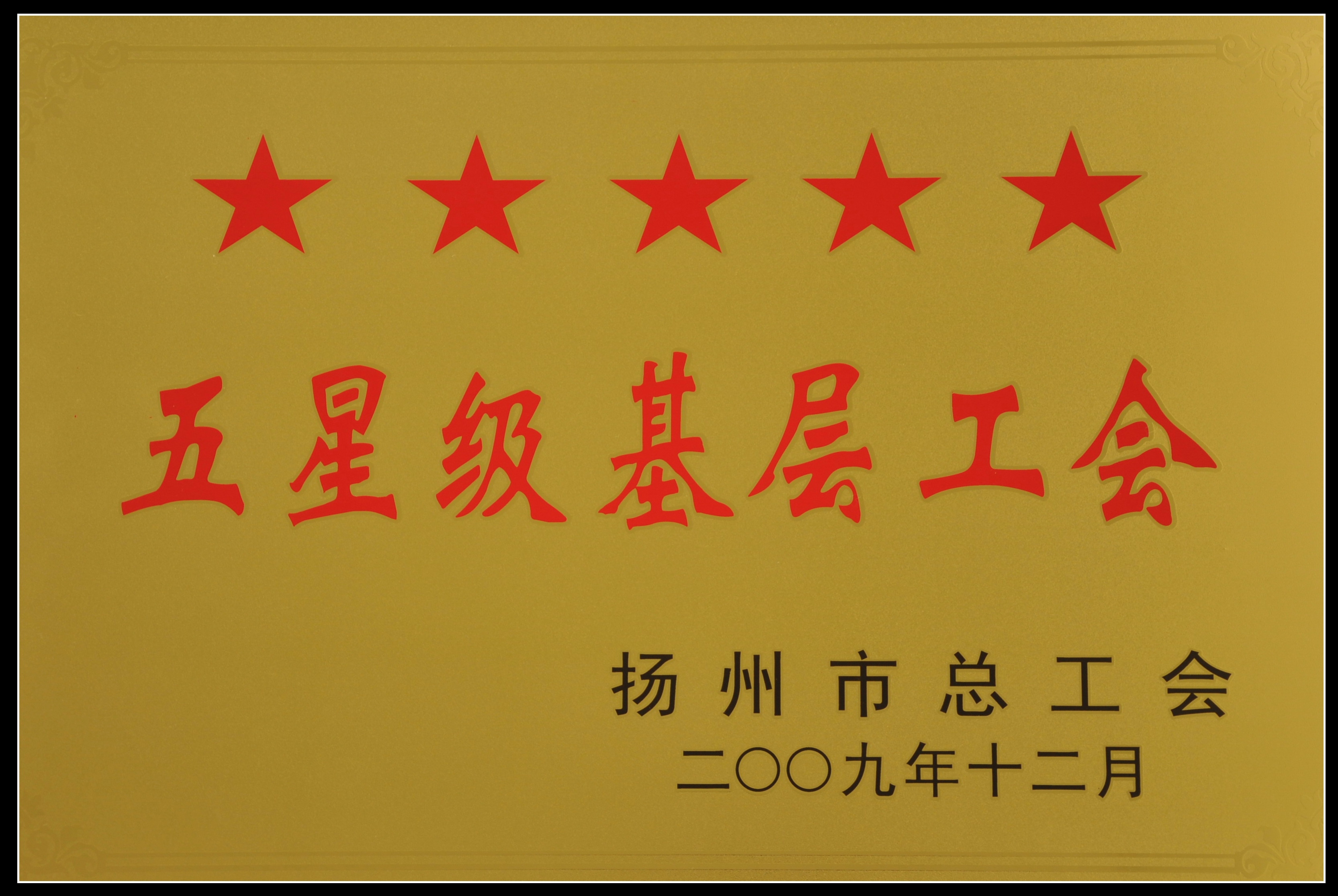 集團公司工會被揚州市總工會評為五星級基層工會