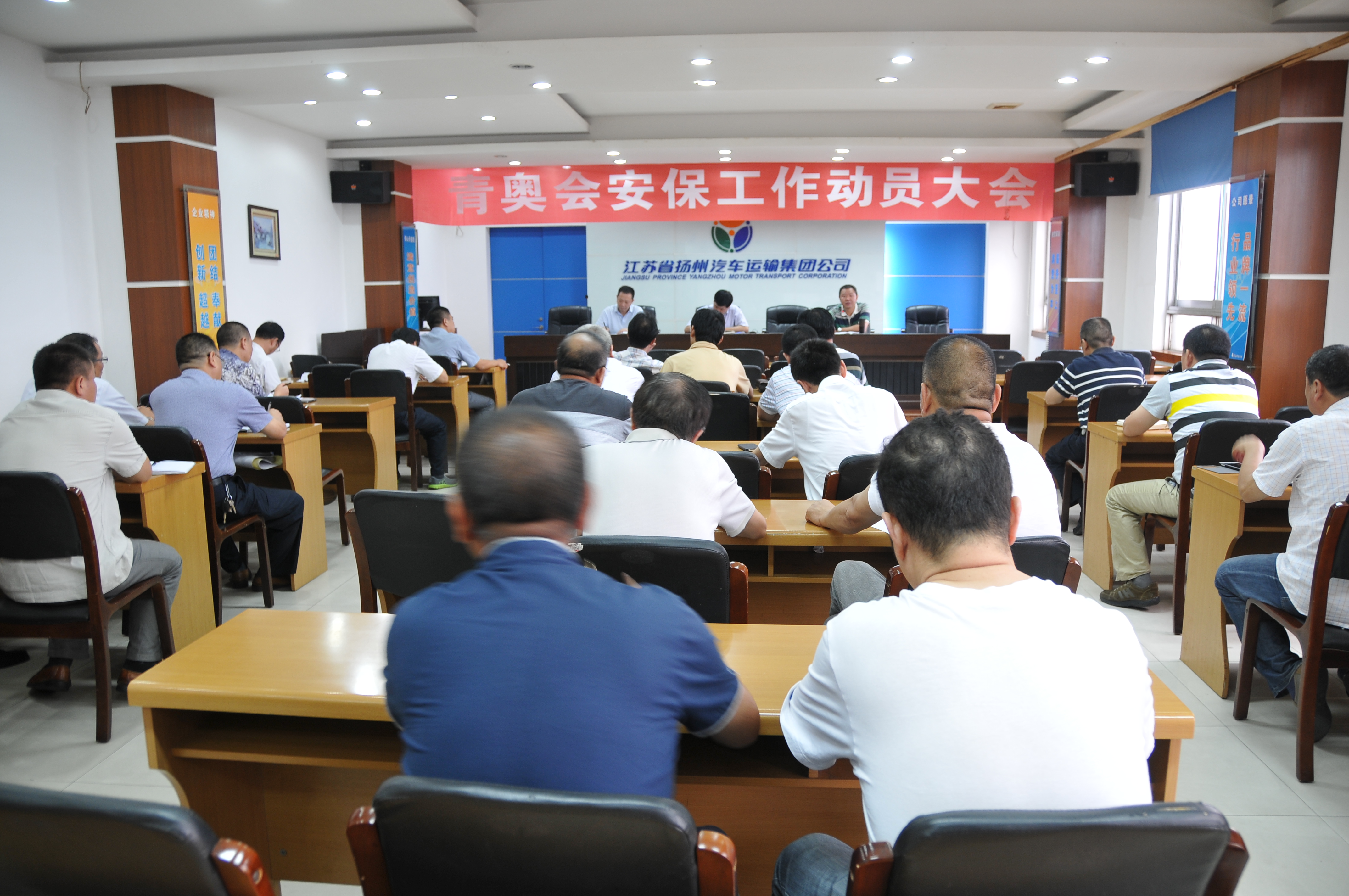 為確保南京“青奧會”順利舉行,集團公司高度重視,于8月12日在七樓會議室專門召開“青奧會”安保工作動員大會,總經(jīng)理、黨委書記吳忠俊主持會議,副總經(jīng)理蔡運河、談衛(wèi)國相繼對青奧會期間我司各項安保工作進行了部署和總動員,以最高的標準、最嚴的要求、最大的努力,做到上下齊動、人人參與、層層設(shè)防、堅守崗位、履行職責(zé)、確保安全,將一切不利因素消滅在萌芽狀態(tài)。