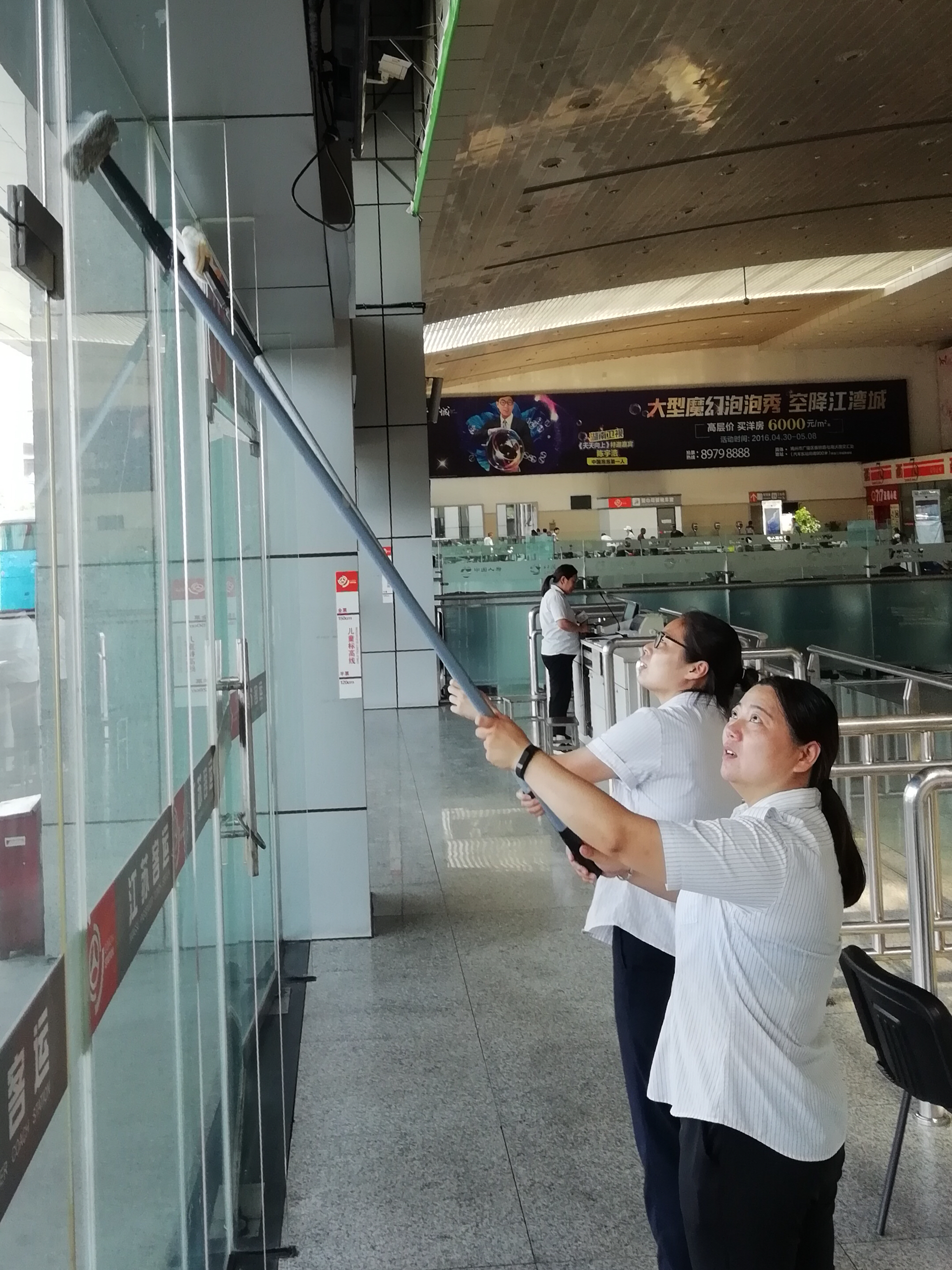 我市愛國衛(wèi)生委員會(huì)向全市發(fā)出創(chuàng)建衛(wèi)生城的號(hào)召,東站干群立即行動(dòng)起來,成立以徐建波為組長的創(chuàng)建衛(wèi)生城領(lǐng)導(dǎo)小組,宣傳組、后勤組、督查組分工明確,專人負(fù)責(zé),對(duì)全站重點(diǎn)部位展開拉網(wǎng)式檢查,綠化、門窗、地面、燈光、水電、副業(yè)網(wǎng)店、宣傳氛圍等方面嚴(yán)格按照市愛國衛(wèi)生委員會(huì)文件要求逐一排查,整改到位。下客區(qū)、停車場、閘口地面年久失修,影響旅客和車輛出行,交投和集團(tuán)分管領(lǐng)導(dǎo)親臨一線,安排施工隊(duì)進(jìn)場作業(yè),加班加點(diǎn),現(xiàn)在地面已經(jīng)面目一新。綠化帶苗木缺失,研究方案,已補(bǔ)苗改造到位,玻璃長廊鐵框銹跡斑斑,立即安排工人冒高溫到現(xiàn)場油漆作業(yè)奮戰(zhàn)兩天,現(xiàn)在已經(jīng)煥然一新。東站各部門、班組排了衛(wèi)生值班表,每天對(duì)照創(chuàng)建衛(wèi)生城的標(biāo)準(zhǔn),對(duì)工作場所包干區(qū)的衛(wèi)生進(jìn)行認(rèn)真打掃清理。