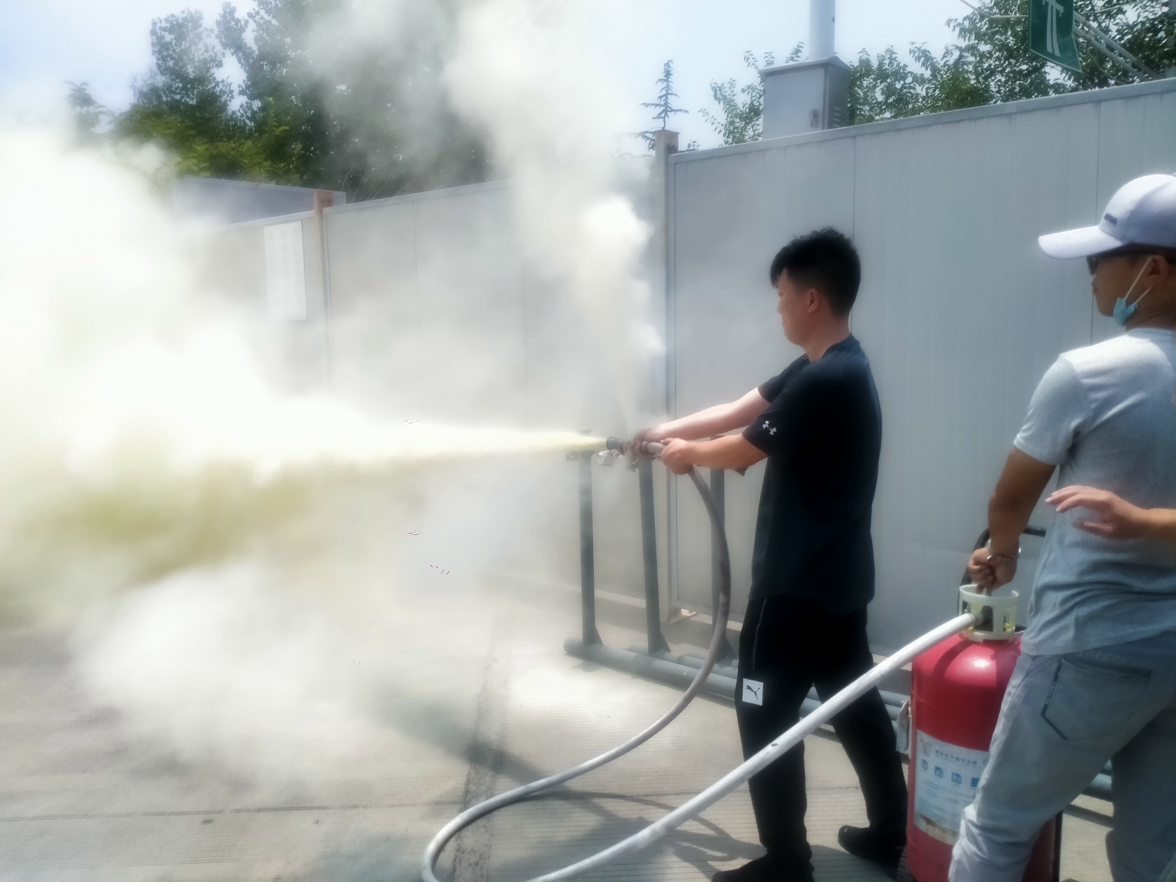 此次演練為強(qiáng)化場地消防安全,做好隨時處置場地火情的準(zhǔn)備,特別準(zhǔn)備了一具35KG手推式滅火器進(jìn)行現(xiàn)場演示。隨后,在工作人員的統(tǒng)一指導(dǎo)下,參演人員紛紛體驗了滅火器的實際操作以及如何引導(dǎo)場地人員疏散,切實增強(qiáng)了員工的應(yīng)急技能。