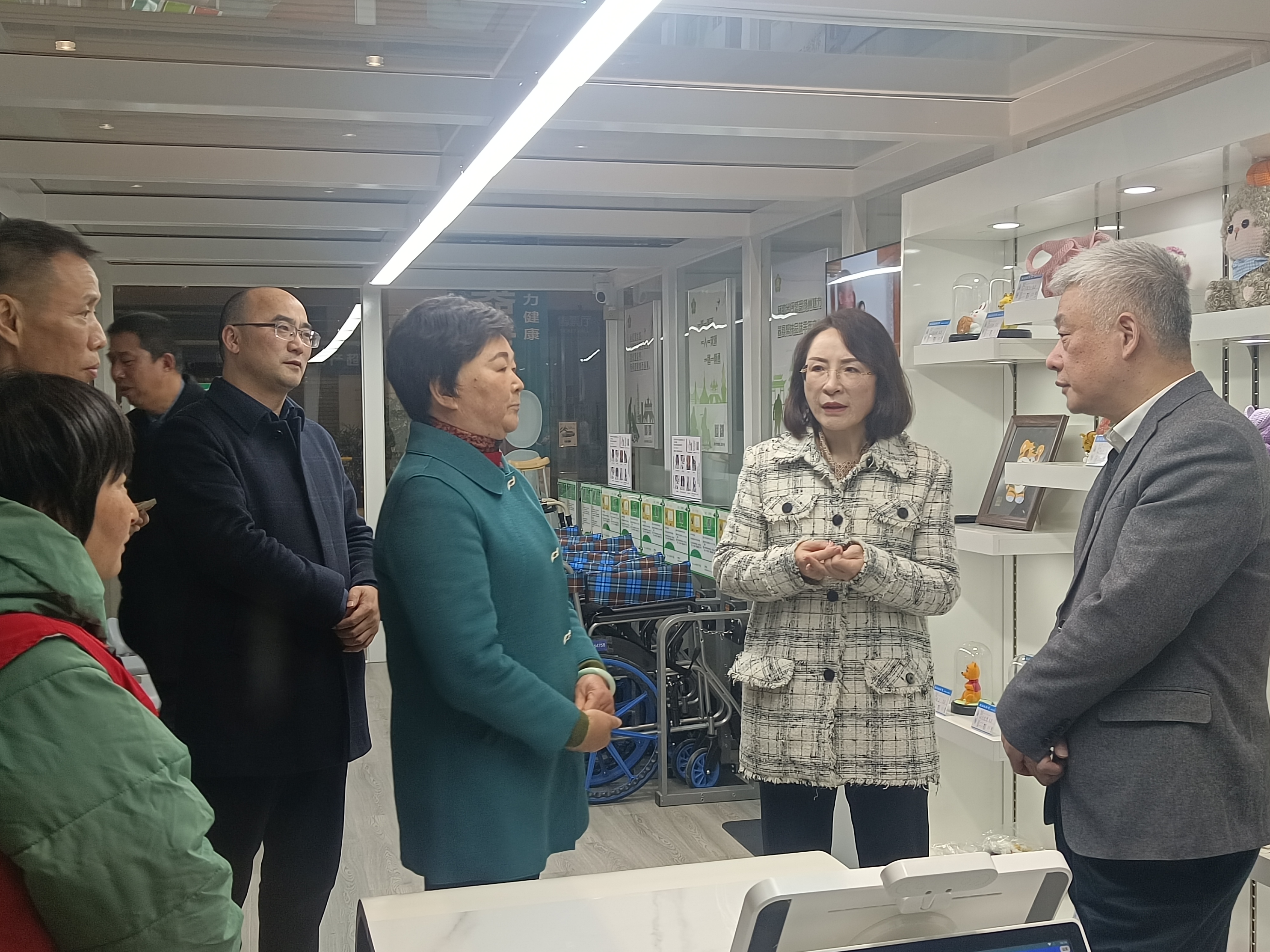 杜曉鎮(zhèn)一行實地查看了無障礙服務(wù)驛站的建設(shè)情況,揚汽集團相關(guān)負(fù)責(zé)人就愛心“驛站”的相關(guān)基礎(chǔ)設(shè)施以及為有需求的殘疾人、老年人出行提供輪椅、手杖等器具租借服務(wù)情況作了詳細(xì)介紹。